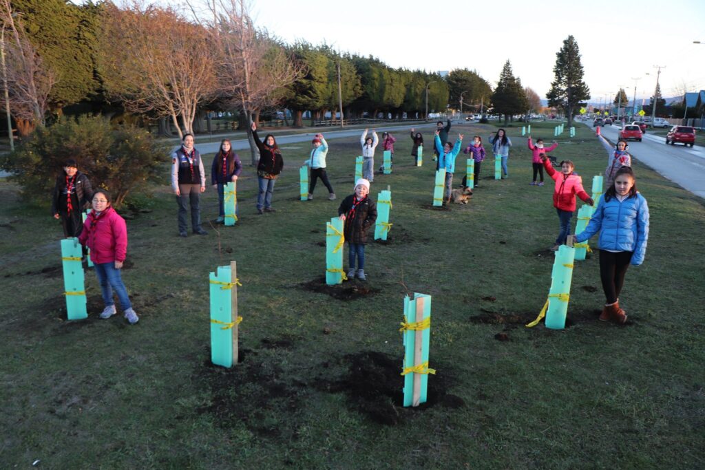 Grupo de niñas scout y Conaf plantaron árboles en Plaza Suiza de Punta Arenas
