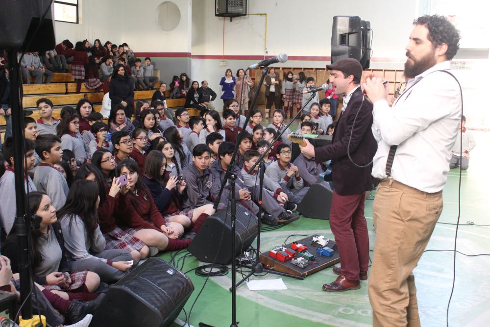 “¡Hasta me dieron una firma! Fue muy entretenido, me encantó, a todo mi curso le gustó. ¡Fue tan divertido que casi lloro…!”, exclamó la alumna de quinto básico Valentina Muñoz, quien junto al resto del estudiantado vibró en el gimnasio del establecimiento con la puesta en escena de la agrupación exponente del blues.