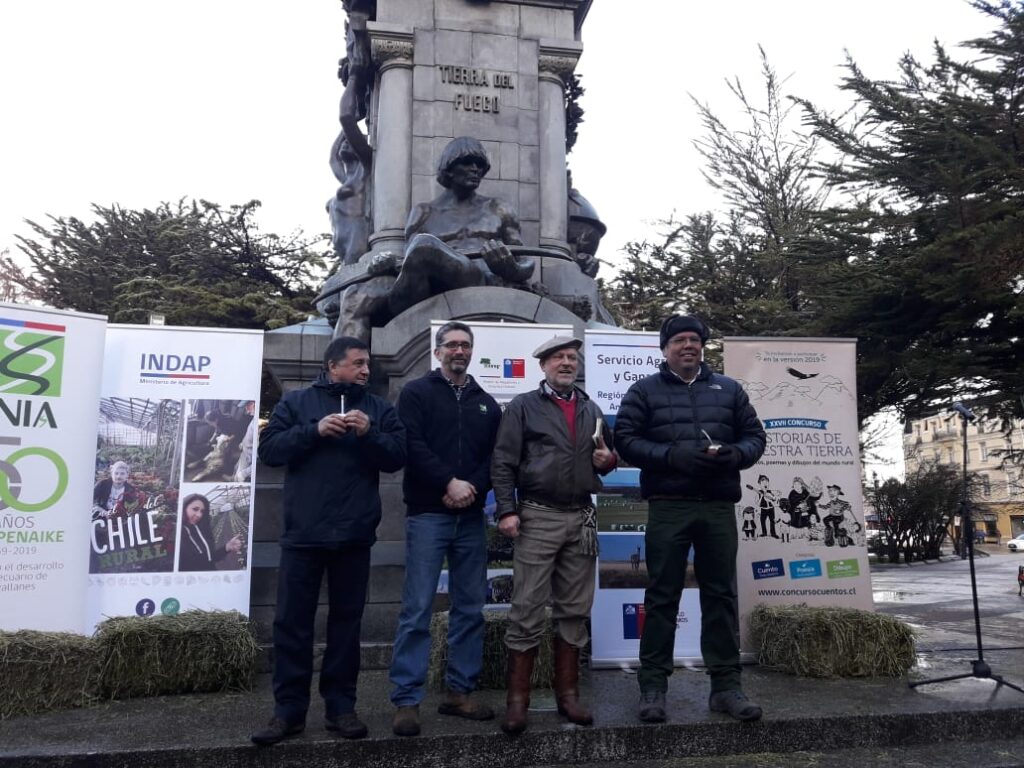 Punta Arenas. 12 junio 2019. En la plaza Muñoz Gamero de la ciudad de Punta Arenas, el Secretario Regional Ministerial de Agricultura, Alfonso Roux, los directivos de los servicios del Agro: INIA, SAG, CONAF e INDAP, y el Alcalde Punta Arenas, Claudio Radonich junto a otras autoridades regionales, se dieron cita cerca del medio día, para realizar el lanzamiento del tradicional concurso de cuentos y poemas “Historias de Nuestra Tierra”, organizado por la Fundación de Comunicaciones, Capacitación y Cultura del Agro, FUCOA del Ministerio de Agricultura.