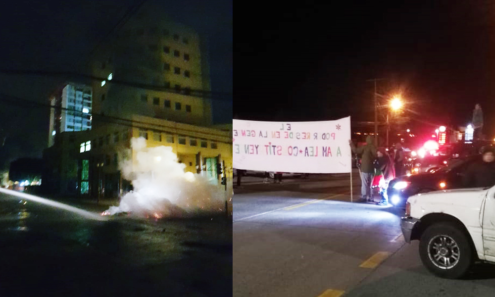 Punta Arenas. 29 octubre 2019. Verdaderas ordas de manifestantes decidieron tomar acciones violentas que afectaron la tranquilidad de la noche del lunes en Punta Arenas, dejando cuantiosos daños en vidrios rotos, pavimentos quemados por barricadas y fogatas y vecinos cansados de vivir con miedo en sus casas. También se produjeron cortes de energía eléctrica mientras efectivos de Carabineros y PDI intentaban a duras penas imponer el orden.
