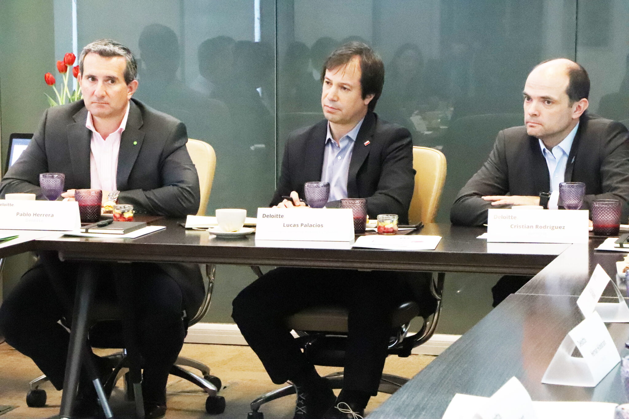 Santiago. 6 diciembre 2019. El ministro de Economía, Fomento y Turismo, Lucas Palacios, se reunió con representantes de grandes empresas extranjeras para analizar sobre cómo estas entidades pueden apoyar a las pymes afectadas por los actos de violencia de los últimos días, en un conversatorio organizado por Deloitte e InvestChile.