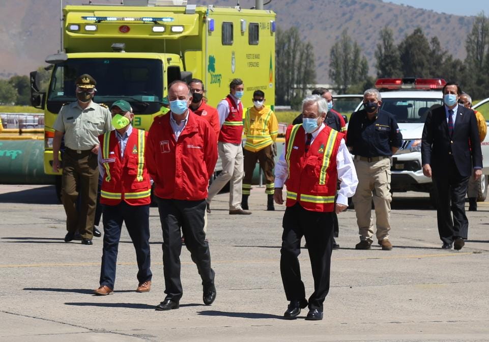«Nunca habíamos tenido esa capacidad de operación, pero es lo que necesitamos porque nunca habíamos enfrentado desafíos tan grandes como los que enfrentaremos esta temporada», señaló el Presidente Piñera en la actividad realizada en Base Aérea de la FACH en la comuna de El Bosque, en el que estuvo acompañado por los Ministros del Interior, Víctor Pérez, de Agricultura, Antonio Walker y de Defensa, Mario Desbordes.