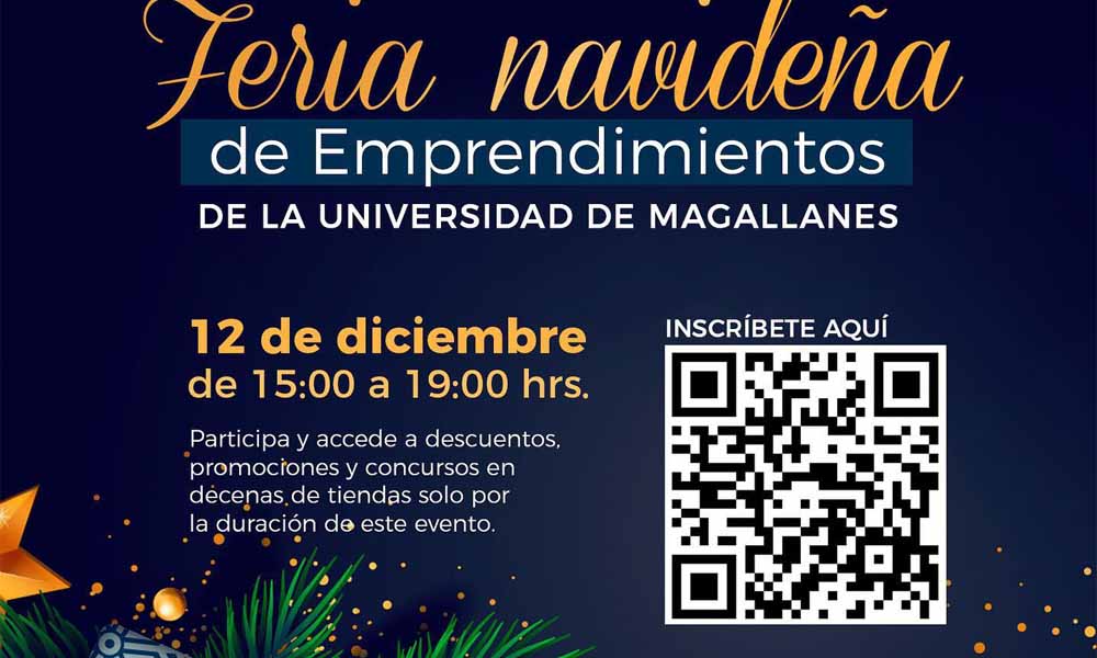 Punta Arenas. 11 diciembre 2020. Este sábado 12 de diciembre, entre las 15.00 y las 19.00 horas, la Universidad de Magallanes (UMAG), a través de la Unidad de Ex Alumnos dependiente de la Vicerrectoría de Vinculación con el Medio, llevará a cabo una Feria Navideña de Emprendimientos, espacio virtual que tiene como finalidad apoyar a las y los emprendedores de la región en la promoción y venta de sus productos conforme se acercan las fiestas de fin de año.