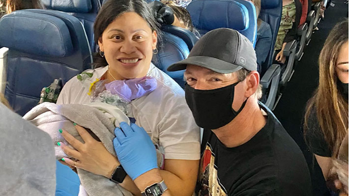 Santiago. 9 mayo 2021. Un médico y un equipo de profesionales neonatales estaban en el lugar adecuado en el momento oportuno, para ayudar a una mujer de Utah a dar a luz a bordo de un vuelo de varias horas en Hawaii.