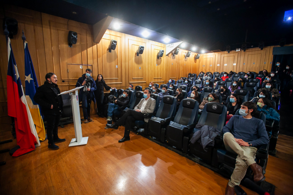 Punta Arenas. 5 mayo 2022. En una instancia impulsada por el Gobierno Regional de Magallanes y frente a un público compuesto por autoridades locales, escolares, estudiantes universitarios, personas mayores e invitados/as especiales, este miércoles, en el cine «Sala Estrella» de Punta Arenas, se exhibió el tráiler y algunas escenas inéditas de la película regional «Cacique Mulato, la Leyenda de Chumjaluwun», producción dirigida por el realizador audiovisual y director de UMAG TV, Jorge Grez Leuquén junto al Poder y la Compañía de Teatro Kre.
