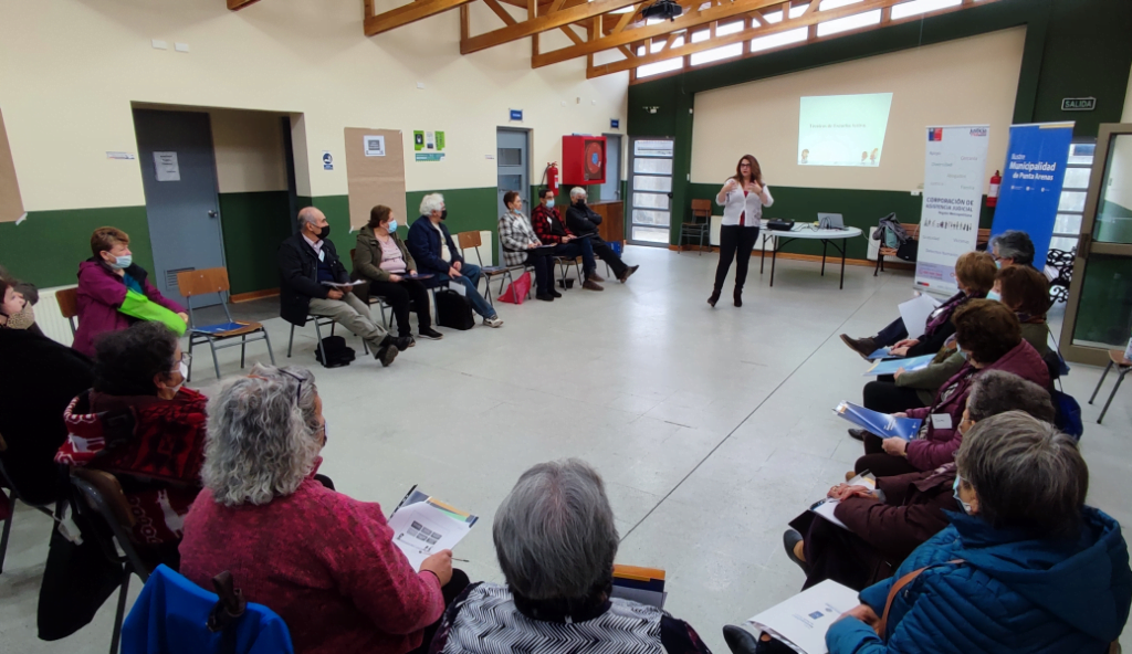 Punta Arenas. 18 mayo 2022. Con el objetivo de entregar elementos que faciliten una mejor gestión de los conflictos entre sus pares, dirigentes de 30 clubes de adulto mayor de la comuna de Punta Arenas participaron del taller de Mediación Comunitaria «Una apuesta por la buena convivencia», organizado en conjunto por el Municipio de Punta Arenas y la Corporación de Asistencia Judicial.