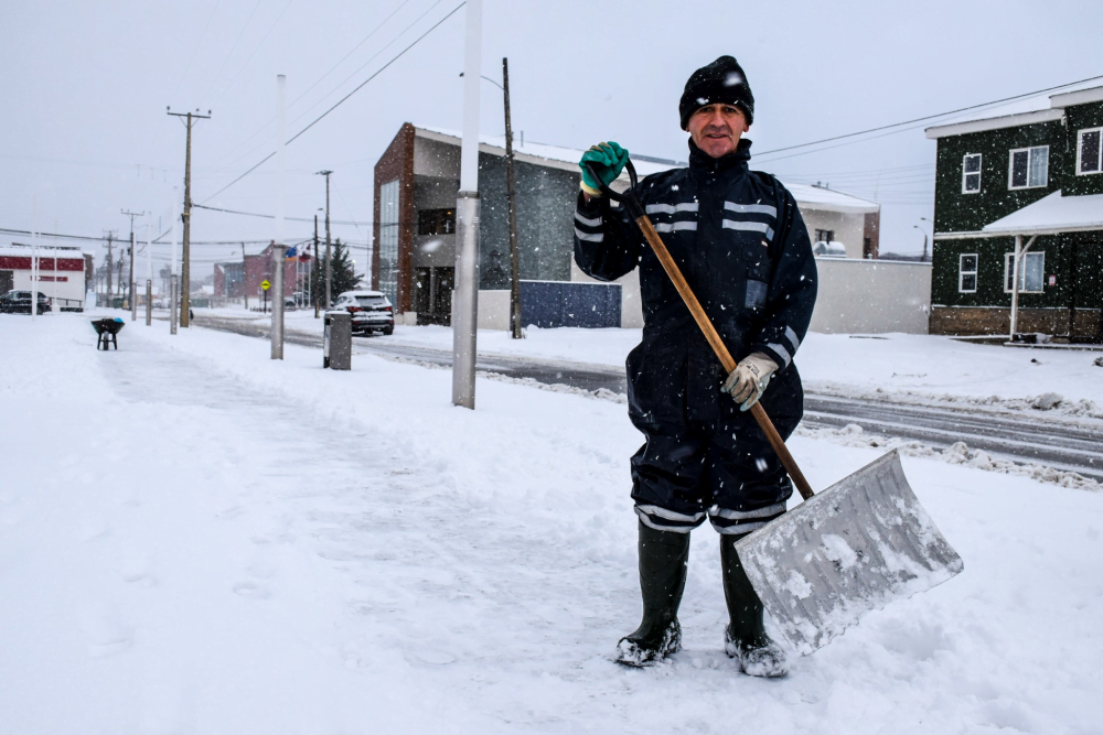 Puerto Williams. 26 julio 2022. Desde tempranas horas del día, este trabajador municipal se esmera por retirar la nieve -y a veces, hielo-, de las aceras públicas, en una ciudad acostumbrada a recibir condiciones meteorológicas adversas en esta época del año. Pese a las precipitaciones de esta semana, que hasta el momento han acumulado 23 centímetros de este manto blanco, el hombre de 63 años asegura que este invierno «no ha sido tan malo como otros años». Aquí, nos cuenta más de su historia en Isla Navarino y entrega un consejo invernal a quienes recién llegan a la capital provincial de la Antártica Chilena.