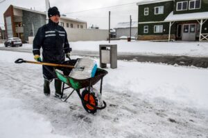 Mientras la nieve cae estrepitosamente en Puerto Williams, César Serón, con pala en mano, la retira de una de las tantas veredas en el sector céntrico de esta ciudad. Es una nueva jornada laboral en pleno invierno austral para este hombre oriundo de Curaco de Vélez, Isla Grande de Chiloé. Hace cuatro décadas atrás, Serón llegó a Isla Navarino para trabajar en una pesquera. Hoy, cumple 24 años ejerciendo labores de mantenimiento y limpieza en áreas verdes y aceras públicas, entre otras tareas, como funcionario de la Municipalidad de Cabo de Hornos.