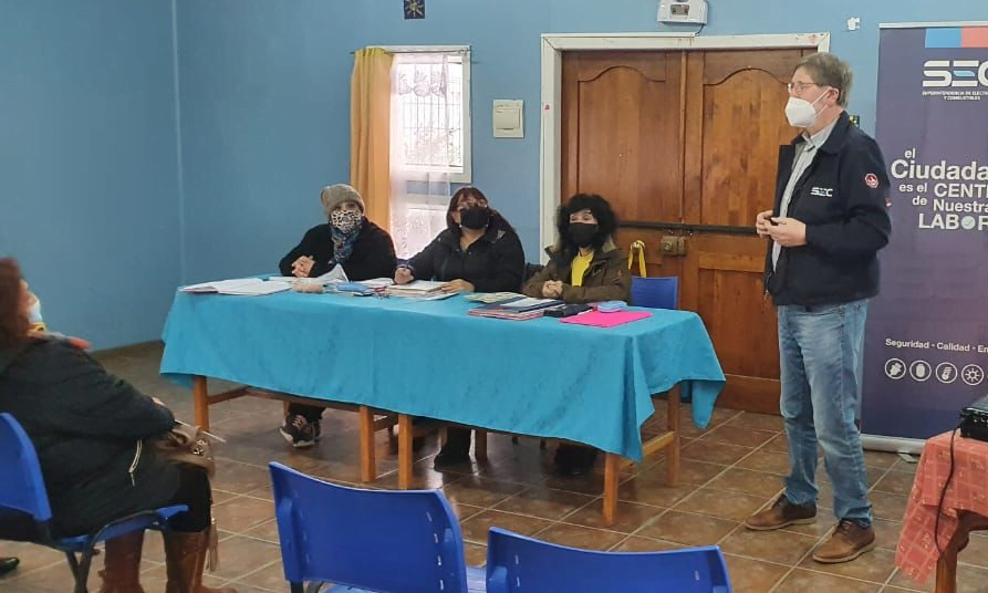 Punta Arenas. 8 julio 2022. Personal de la Dirección Regional Magallanes de la SEC, llegó hasta el sector Isla de Chiloé, en Punta Arenas, donde se reunió con las y los vecinos de la Junta de vecinos Goleta Ancud, para exponer recomendaciones, y buenas prácticas, para el uso seguro del gas al interior de los hogares durante la época invernal.