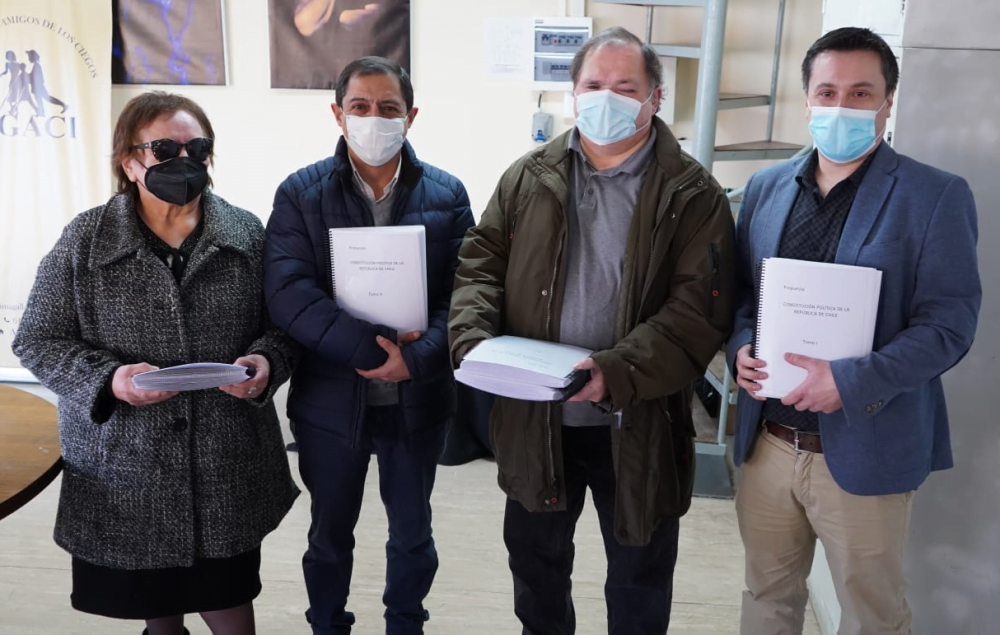 Punta Arenas. 17 agosto 2022. Con el objetivo de entregar a la comunidad de Magallanes un acceso inclusivo de la propuesta de la nueva Constitución, el seremi de Gobierno, Arturo Díaz, junto al seremi de Desarrollo Social, Danilo Mimica, entregaron esta mañana a la Agrupación de Amigos de los Ciegos (AGACI), un ejemplar de dicho documento en formato braille.
