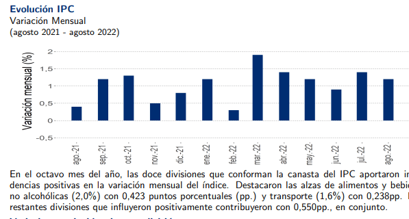 Punta Arenas. 8 septiembre 2022. En agosto de 2022, el Índice de Precios al Consumidor (IPC) anotó un aumento mensual de 1,2%, acumulando alzas de 9,9% en lo que va del año y 14,1% a doce meses, informó el INE.