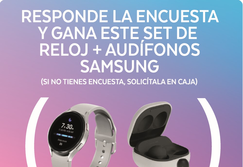 Desde la empresa destacaron que quienes respondan la encuesta participarán en forma automática en el sorteo de un Samsung Galaxy Watch y unos audífonos inalámbricos Ear Buds de la misma marca.