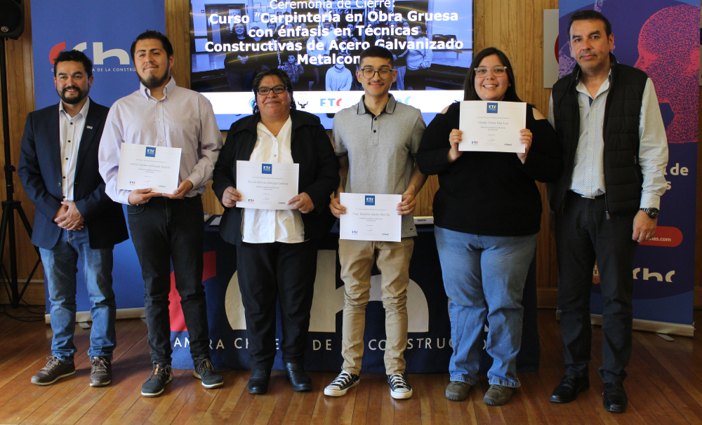 Punta Arenas. 14 enero 2023. Veintiún estudiantes obtuvieron el diploma del «Curso de Carpintería en obra gruesa. Técnicas constructivas de Acero Galvanizado», capacitación gratuita organizada por la Cámara Chilena de la Construcción (CChC) Punta Arenas, a través de la Escuela Tecnológica de la Construcción (ETC), en conjunto con la Fundación para el Desarrollo de la XII Región de Magallanes (FIDE XII). Esta iniciativa es financiada a través de franquicia tributaria de la empresa Cemento Melón y cuenta con el apoyo del Gobierno Regional.