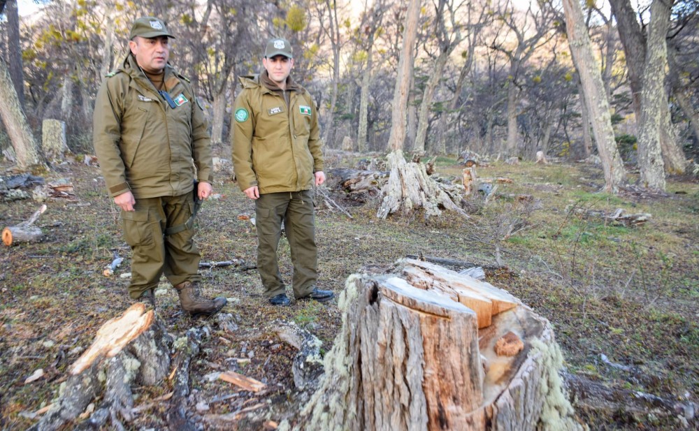 La comitiva, compuesta por la delegada presidencial provincial de la Antártica Chilena, María Luisa Muñoz, funcionarios de Conaf Área Cabo de Hornos y la IV Comisaría de Carabineros, concurrió al terreno ubicado en un sector periurbano de la capital provincial, donde evidenció árboles cortados, así como también trozos de troncos y astillas esparcidos en el suelo, siendo en su mayoría lengas, de la familia de Nothofagus, para potencialmente ser utilizados como leña.