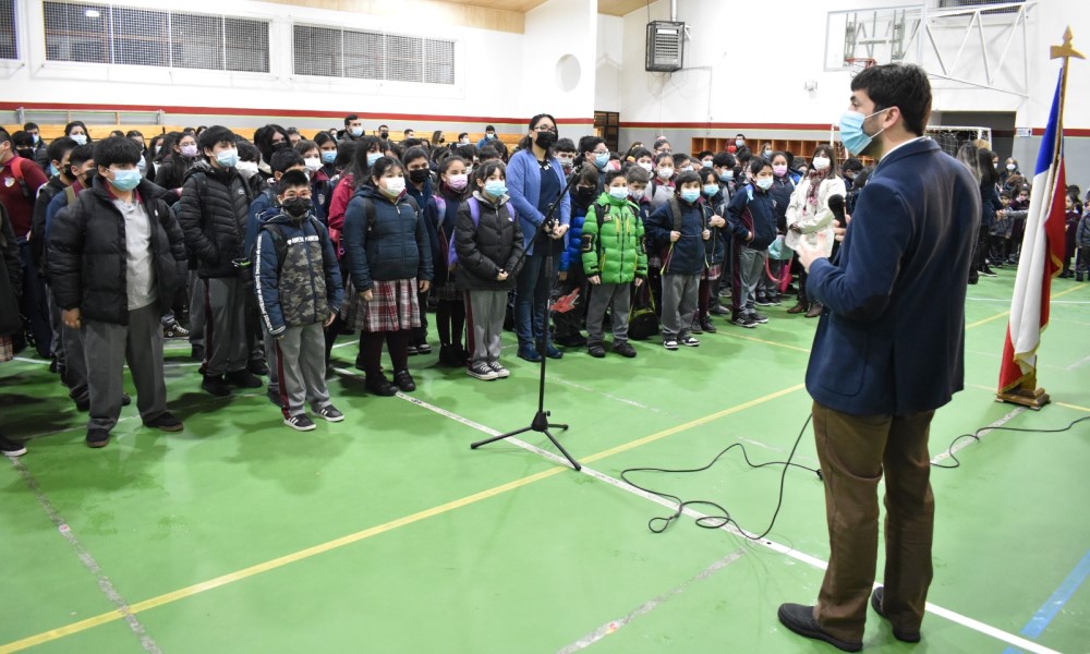 Desde las 7:45 de la mañana, las autoridades de gobierno, acompañadas del director del establecimiento educacional, Cristián Díaz, recibieron a los estudiantes que iban llegando a su escuela después de las vacaciones de invierno. Cuando sonó el timbre, a las 8 horas, se dirigieron al gimnasio donde cantaron el himno nacional, entregando luego un saludo a las y los estudiantes, docentes y asistentes de la educación que estaban formados, destacando la importancia de la asistencia a clases, el uso de mascarillas y la implementación del Plan de Reactivación Educativa.