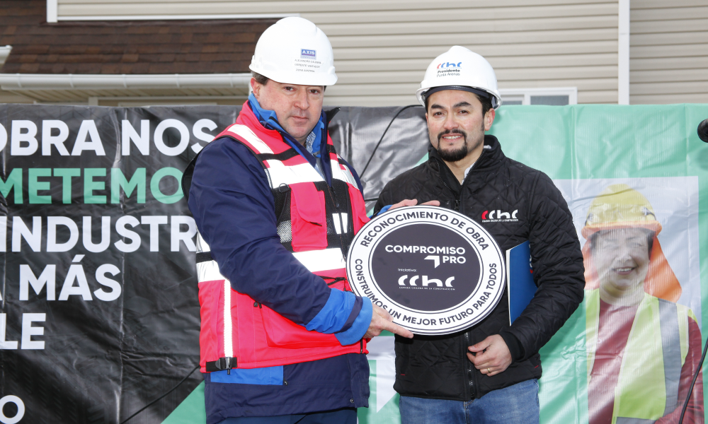 Punta Arenas. 24 julio 2023. La Cámara Chilena de la Construcción (CChC) entregó a la obra Alto Bulnes III de Desarrollos Constructivos AXIS el Sello PRO, el camino que el gremio ha puesto a disposición de las empresas del sector para lograr una industria más sostenible. El Presidente de la CChC Punta Arenas, Omar Vargas, felicitó a la AXIS D.C. y aseguró que «el Compromiso PRO, con el Sello PRO, marca un cambio positivo en nuestra industria. El Sello PRO es una herramienta de acompañamiento para que empresas de la construcción puedan avanzar y que sean cada día más sostenibles. Felicitamos a AXIS por su proactividad y por ser una empresa constructora líder en la sostenibilidad en Magallanes, porque ya tienen dos obras selladas en la región y van por el Sello PRO Empresa. Estoy convencido que sus esfuerzos, sus iniciativas, motivarán a otras constructoras a sumarse al Sello PRO en Magallanes».