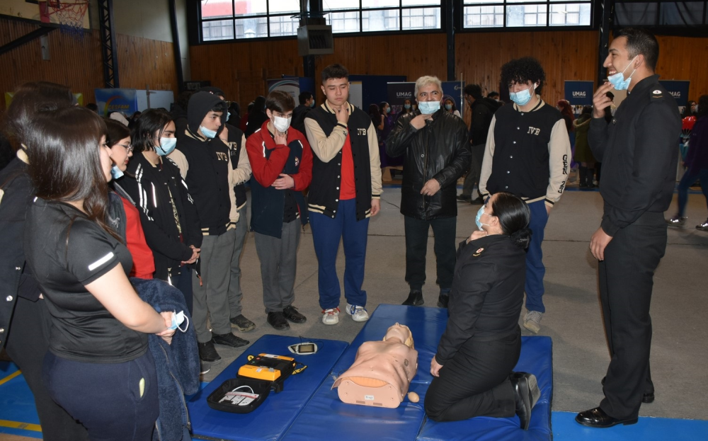 La jefa de la unidad técnico pedagógica del Liceo Polivalente Sara Braun, Lorena Bahamondez, explicó que “como establecimiento educacional nosotros promovemos fuertemente la formación no solo en el área académica, sino que también en el área técnico profesional, por lo tanto, el poder ser parte de esta feria, sin duda alguna que nos llena de orgullo, y también como proceso formativo para nuestros estudiantes de la especialidad de enfermería y de turismo, y por supuesto, que también nosotros hacemos extensible la invitación al resto de los establecimientos educacionales, porque el factor prevención es fundamental. El avanzar en el conocimiento va a hacer que ellos también fomenten la prevención, conozcan los riesgos asociados y comiencen a prevenirlos”.