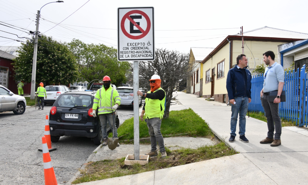 Punta Arenas. 15 diciembre 2023. Durante la tarde de este jueves, la Dirección de Tránsito de la Municipalidad de Punta Arenas, dio a conocer el inicio de las obras de mantención vial que afectan a distintos sectores de la comuna. Sobre la presente jornada, la administración comunal informó respecto a la instalación de 14 nuevos espacios de estacionamiento para personas en situación de discapacidad.
