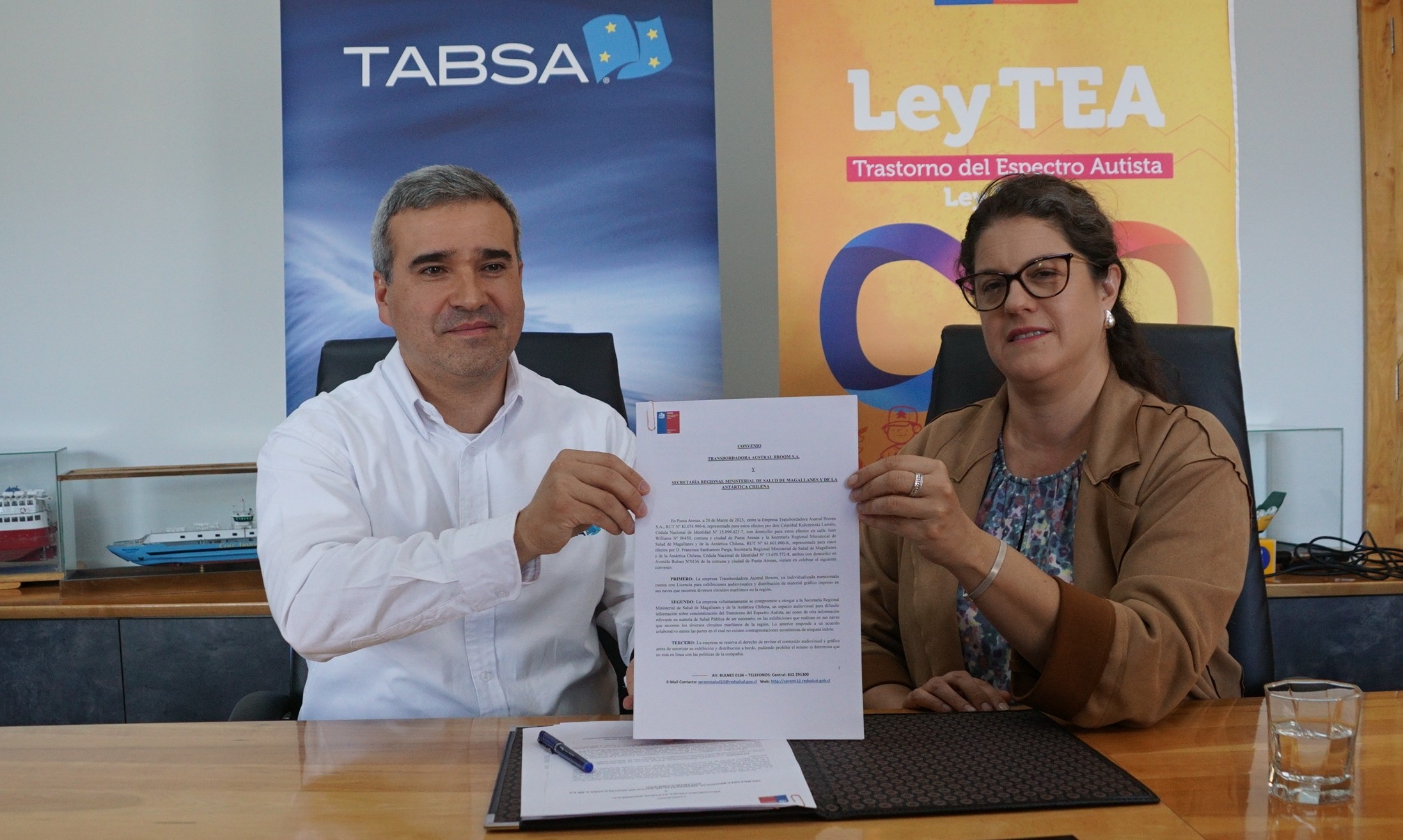 Punta Arenas. 21 marzo 2025. Mediante la firma de un convenio, que viene a sumarse a otros instrumentos suscritos anteriormente, la SEREMI de Salud en conjunto con TABSA impulsarán una campaña tendiente a sensibilizar a la comunidad sobre las características y cuidados del Trastorno del Espectro Autista (TEA).