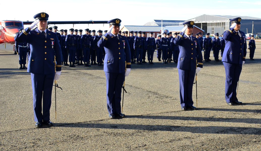 La ceremonia culminó con la entonación del Himno de la Fuerza Aérea de Chile y un desfile terrestre y aéreo. En este participaron Observadores Terrestres y Fuerzas Especiales, junto con las aeronaves F-5 Tigre III del Grupo de Aviación N.º 12 y DHC-6 Twin Otter del Grupo de Aviación N.º 6, reafirmando así la presencia y capacidad operativa de la IVª Brigada Aérea en el extremo sur del país.