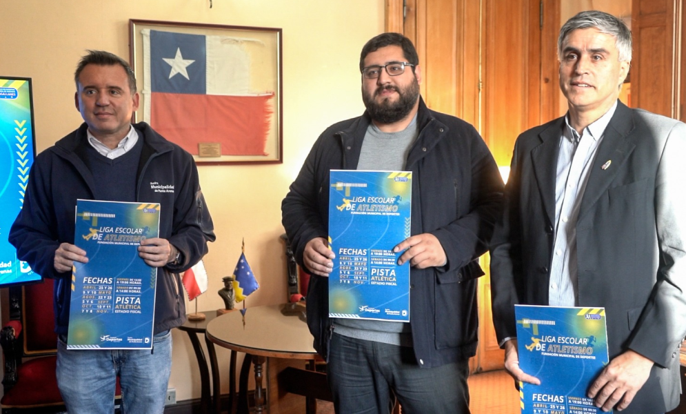 Punta Arenas. 22 abril 2025. En dependencias de la alcaldía de Punta Arenas, se realizó ayer el lanzamiento oficial de la Segunda Liga Escolar de Atletismo, actividad que busca fomentar el desarrollo del atletismo en edades tempranas y reclutar nuevos talentos desde los establecimientos educacionales de la comuna para su formación en clubes federados.