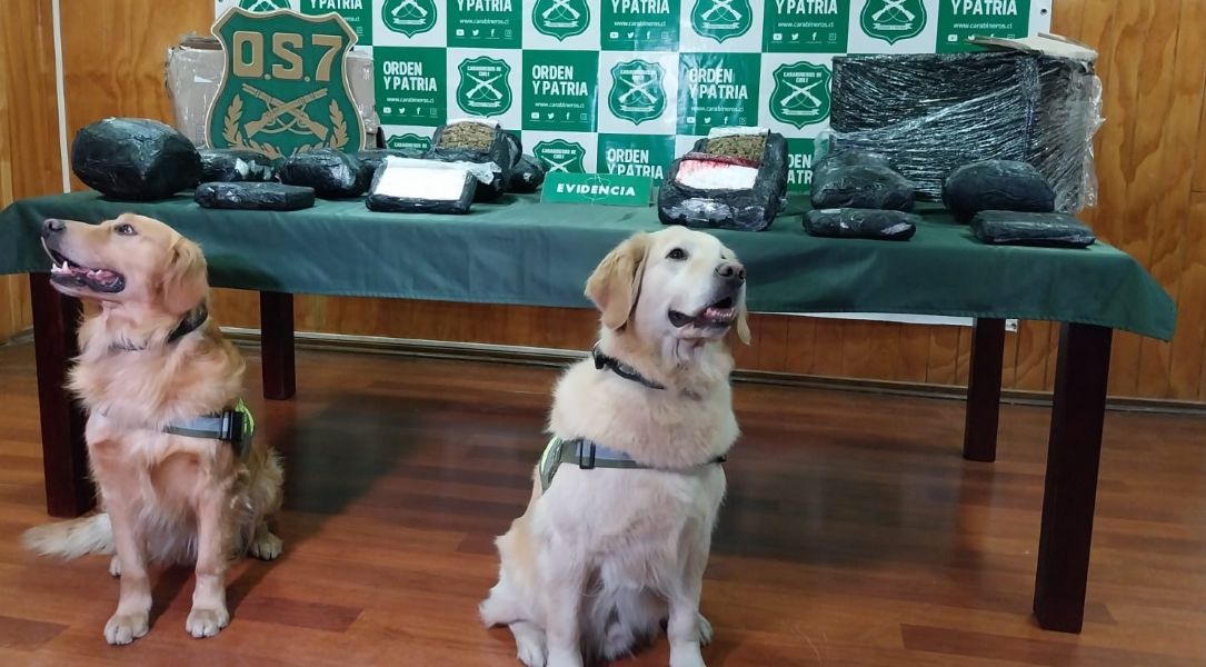 Los estupefacientes fueron detectados por los perros Golfo y, el recién llegado, Hulk del Emblema Verde, los que marcaron como positivo dos cajas que provenía desde Santiago, con remitente la ciudad de Punta Arenas.