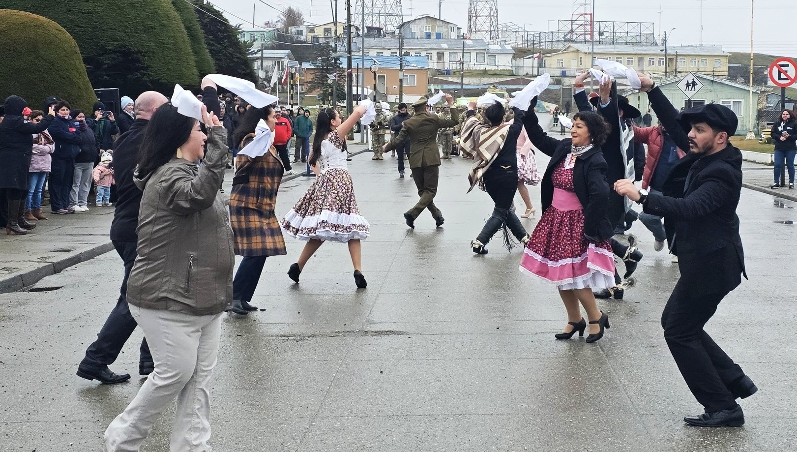 La ceremonia comenzó con el tradicional esquinazo, presentado por el Taller de Cueca Municipal, para luego dar paso al encajonamiento de la Banda Instrumental del Destacamento Motorizado N°11 “Caupolicán”, que marcó el paso de las distintas delegaciones frente a las autoridades. Entre los participantes se contaron el Jardín Infantil Pastorcitos, la Escuela Cerro Sombrero, la agrupación folclórica Renacer Campesino, Mutual de Seguridad y la Brigada de Respuesta a Emergencias de ENAP Isla.