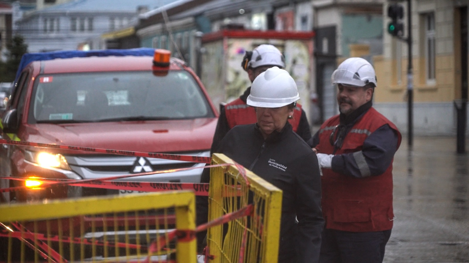 «Lo más complejo y nuevo ha sido el desprendimiento de parte de la losa que cubre esta torre, que es la más alta que hay en nuestra ciudad. Han caído piedras grandes. Esto es un peligro real. Vamos a cerrar este lugar para el paso de peatones y también pedimos a los dueños de vehículos que no se estacionen, porque tendremos viento hasta el día viernes, por lo tanto, podemos tener más problemas», informó el alcalde de Punta Arenas, Claudio Radonich.