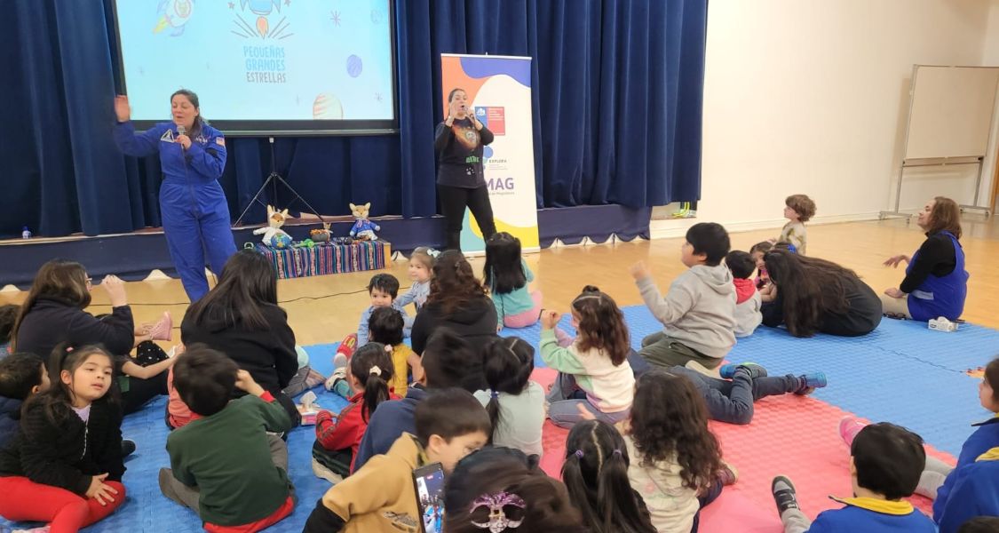 Punta Arenas. 6 octubre 2025. “Pequeños Exploradores del Cielo” fue nombre de la actividad basada en los cuentacuentos “ Nova visita el sistema Solar” , “ Juri y la tortuga Jurásica” y “ Artie quiere ser un rockstar” efectuada por la Fundación Pequeñas Grandes Estrellas, con la astrónoma Daniela Fernández y la educadora de Párvulos Camila Cifuentes.