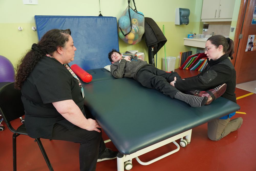 Carolina, destaca la contención que han recibido del equipo de profesionales del Centro de Rehabilitación. “Llegué acá sin saber nada sobre la enfermedad del Maxi y de a poco me han ido orientando y calmando mis miedos sobre el futuro de Maxi, cómo se va a desenvolver, podrá ir a un colegio normal, qué va a pasar si no camina, entonces el equipo del Centro me ha ayudado a calmar mi ansiedad”.