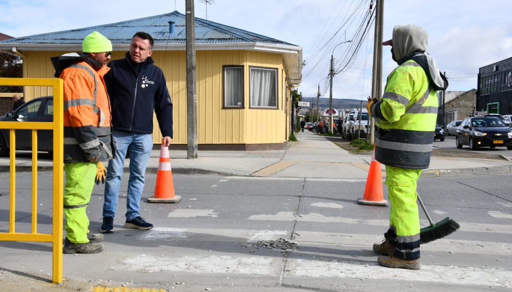 Punta Arenas. 1 octubre 2025. La Municipalidad de Punta Arenas dio inicio este lunes a las obras de demarcación de cruces peatonales y mejoramiento de señaléticas, en el marco del contrato de mantención vial que considera una inversión total de $365 millones y que tendrá una duración de seis meses.