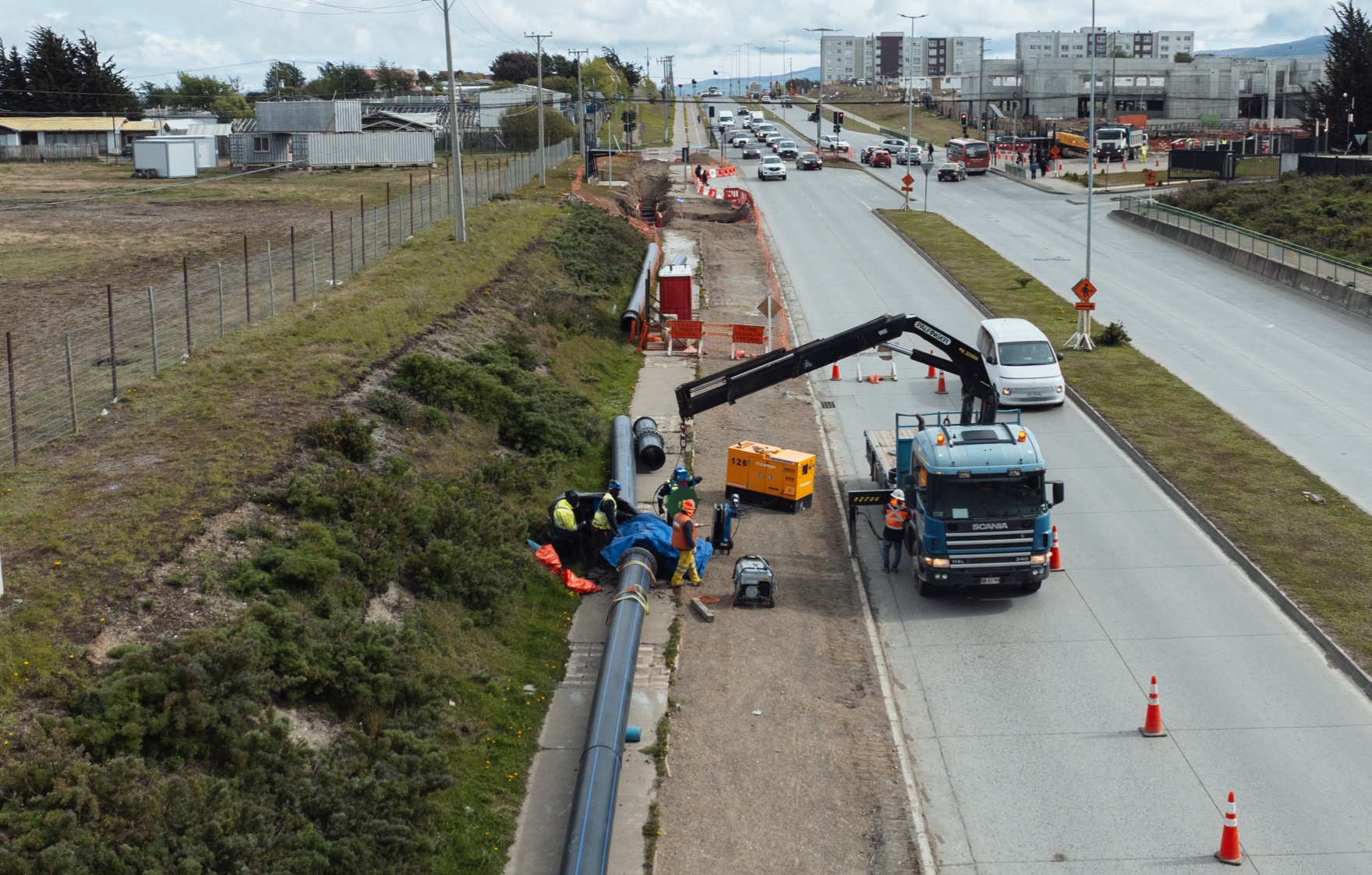 El avance de estas obras marca un importante hito en la ampliación del sistema sanitario de la ciudad. Actualmente, los trabajos se desarrollan en distintos frentes paralelos: en la Ruta 9, con la instalación de entibaciones para la red principal de colector; en avenida Los Flamencos, con labores de reubicación de la red de agua potable y normalización de accesos al Hospital Clínico; y en avenida Eduardo Frei, con reposición de ciclovía y tendido de tuberías frente al Centro de Rehabilitación y al Hospital.