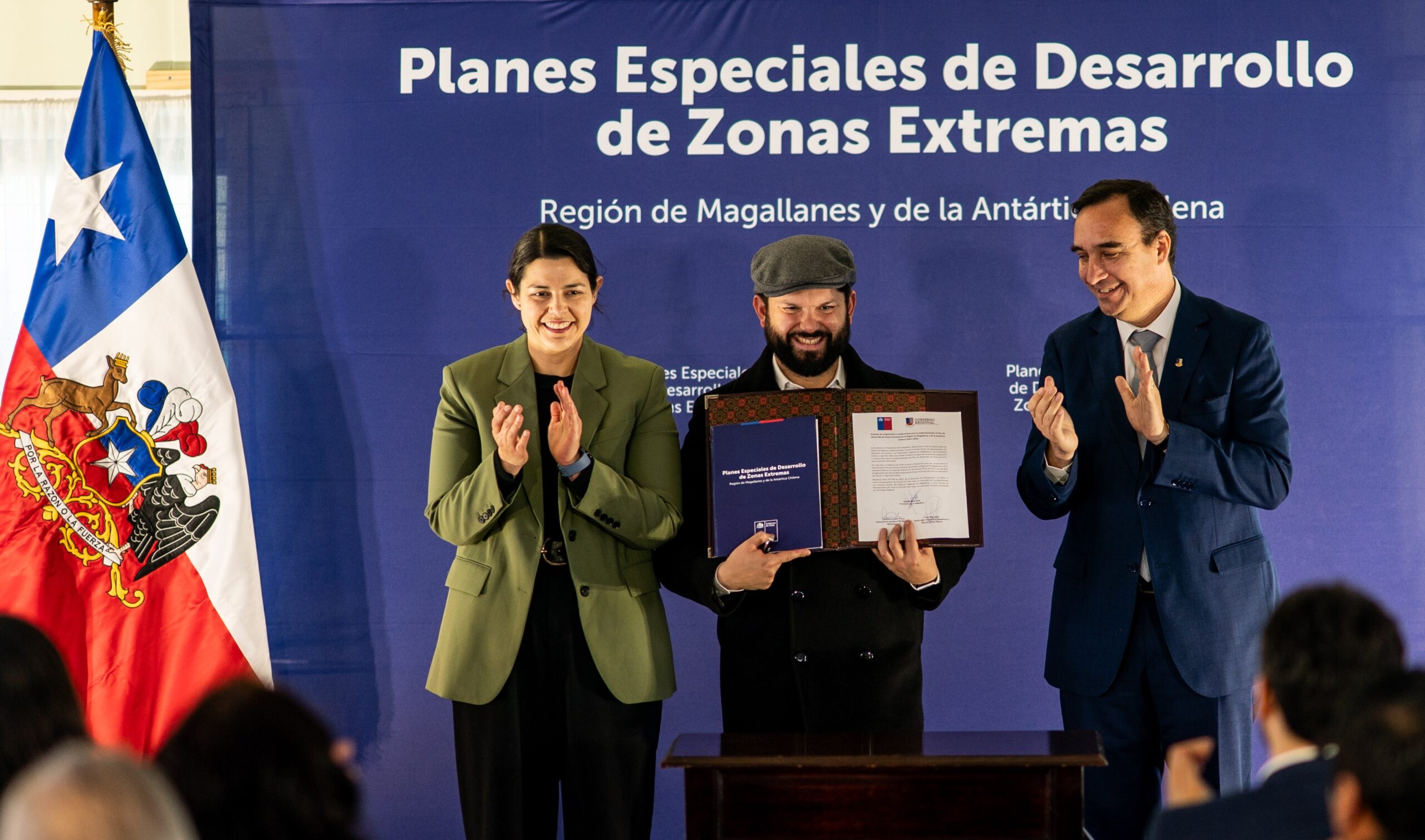 Punta Arenas. 15 noviembre 2025. Fue desde la junta de vecinos de la Población Nelda Panicucci, en la zona sur de la ciudad de Punta Arenas, que el Presidente Gabriel Boric, junto al Gobernador Jorge Flies y la Subsecretaria de Desarrollo Regional, Francisca Perales firmaron el nuevo Plan Especial de Desarrollo de Zonas Extremas (PEDZE) 2025-2035 para la región de Magallanes y la Antártica Chilena.
