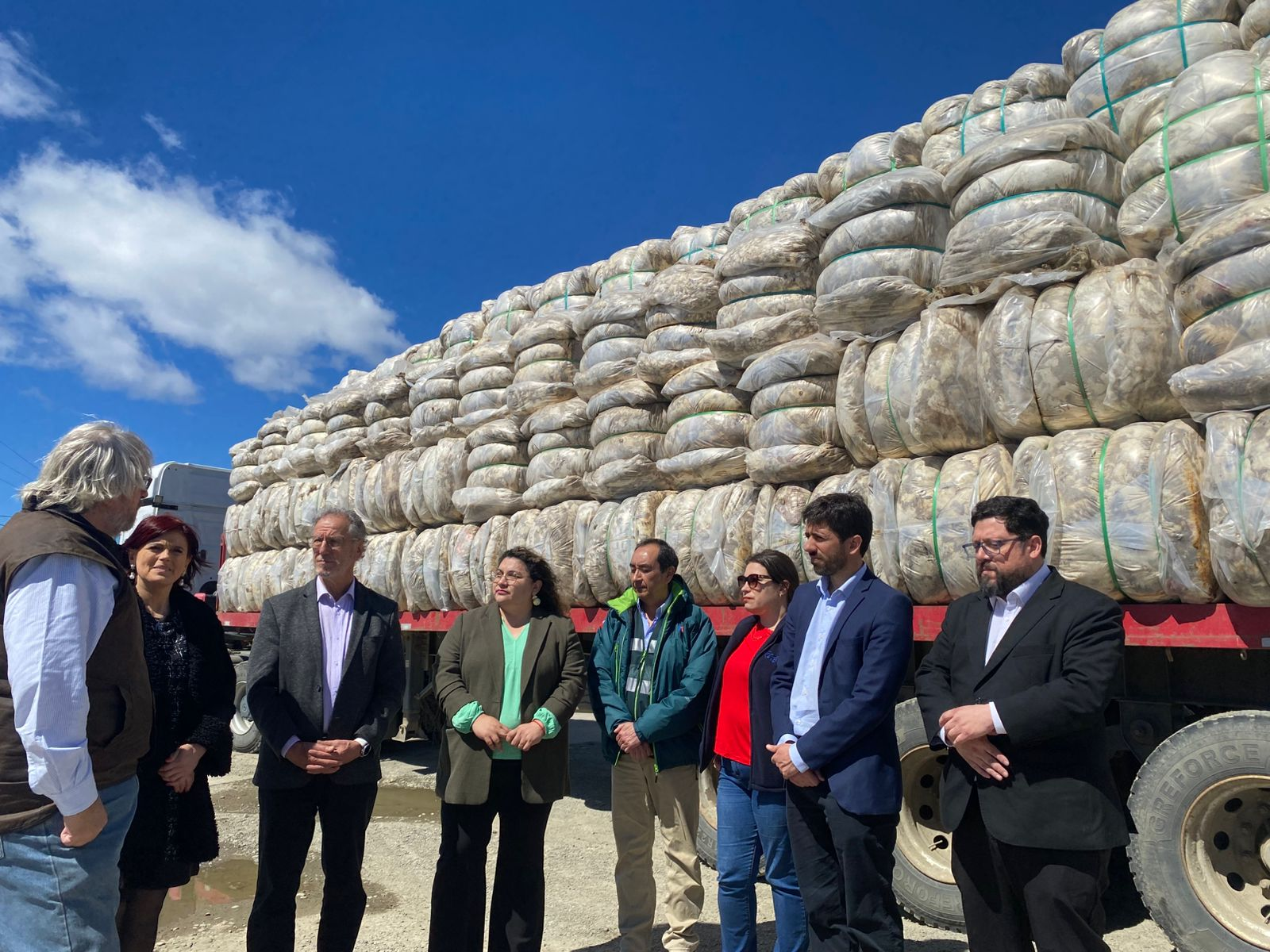 Punta Arenas. 29 noviembre 2025. Una mirada al futuro de la industria lanera motivó la visita del ministro de Economía y Fomento, Álvaro García, a las bodegas de acopio de la empresa Agropat en Punta Arenas. Acompañado del Delegado Presidencial José Ruiz, del presidente de Asogama, Gerardo Otzen, y de las seremis de Agricultura y Economía, la autoridad recorrió las instalaciones donde se procesa gran parte de la lana que la región envía al exterior.