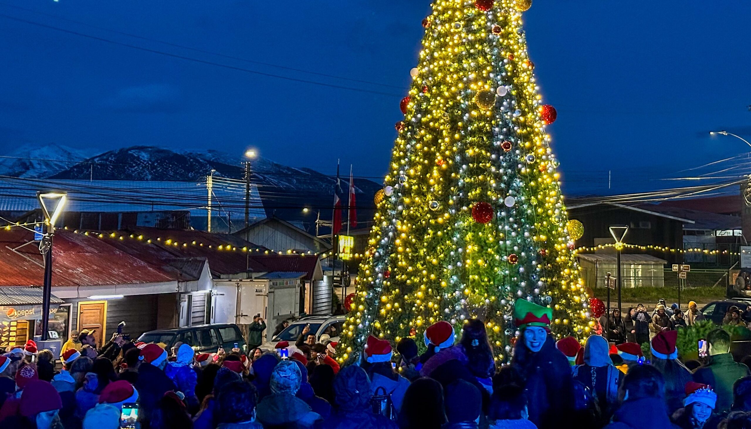 Puerto Williams. 16 diciembre 2025. La plaza Bernardo O´Higgins de Puerto Williams fue el epicentro del inicio de las actividades navideñas en la ciudad más austral del mundo, en una jornada que reunió a vecinos de todas las edades, y que contó con villancicos, chocolate caliente y el encendido del árbol de Navidad de EDELMAG en conjunto con la Municipalidad de Cabo de Hornos.