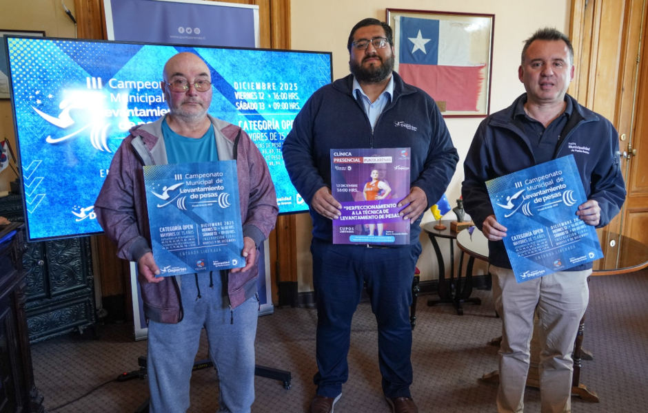 Punta Arenas. 12 diciembre 2025. La Municipalidad de Punta Arenas, a través de la Fundación Municipal de Deportes, anunció este jueves el tercer Campeonato Municipal de Levantamiento de Pesas, instancia que busca fortalecer el desarrollo local de la halterofilia y seguir posicionando esta disciplina a nivel regional. La actividad contará además con una clínica deportiva gratuita encabezada por la destacada pesista nacional y excampeona mundial María Fernanda Valdés.