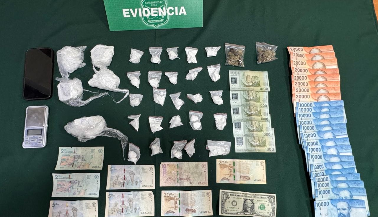La acción policial hizo posible la confiscación de 583 gramos, 800 miligramos de clorhidrato de cocaína, dosificada en 25 bolsas plásticas pequeñas y 5 trozos embalados en nylon, 10 gramos 100 miligramos de THC marihuana; $315.000; U$21; 9 mil pesos Colombianos; 1 pesa digital; y 1 teléfono celular.
