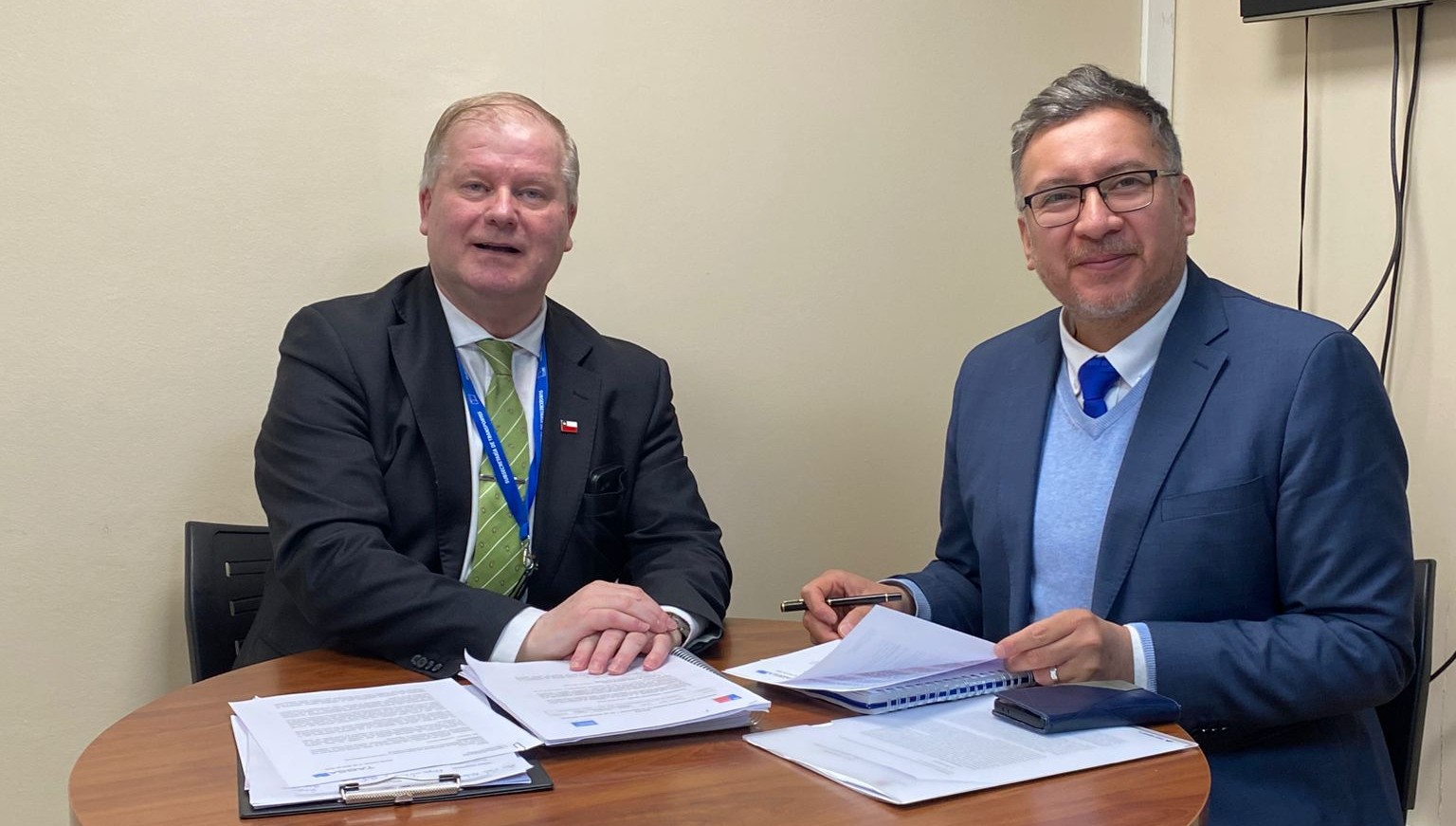 Puerto Williams. 15 abril 2026. El delegado presidencial provincial de la Antártica Chilena, Rodolfo Moncada Salazar, y el seremi de Transportes y Telecomunicaciones, Allan Stowhas, abordaron los diferentes desafíos en materia de conectividad en el mencionado territorio austral.