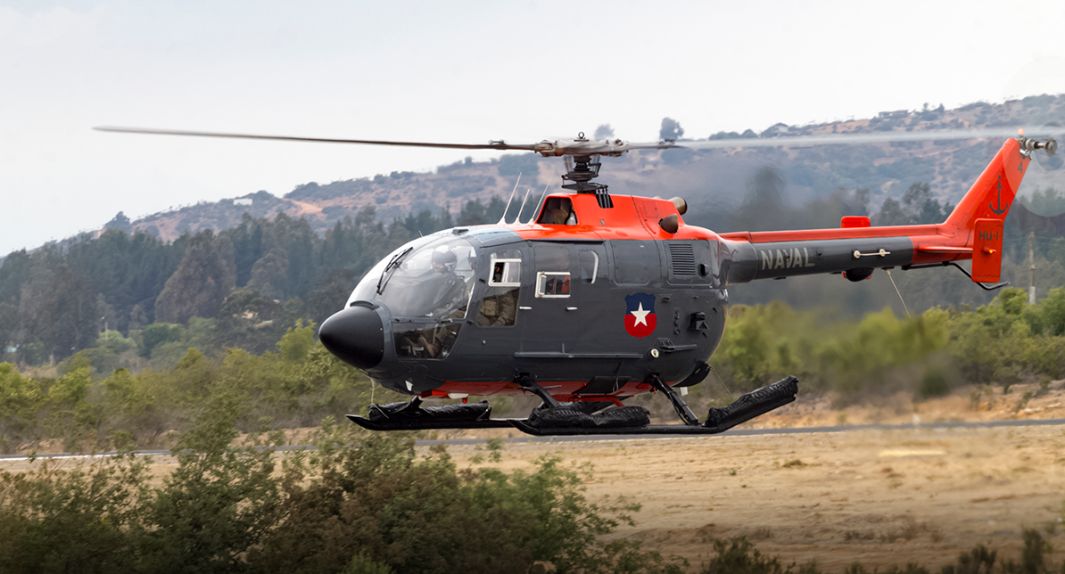 El helicóptero MBB Bo 105, designado como UH-05 en la Armada de Chile, fue fabricado originalmente por la compañía alemana Messerschmitt-Bölkow-Blohm (MBB). Esta empresa es el antecesor directo de la actual Airbus Helicopters.